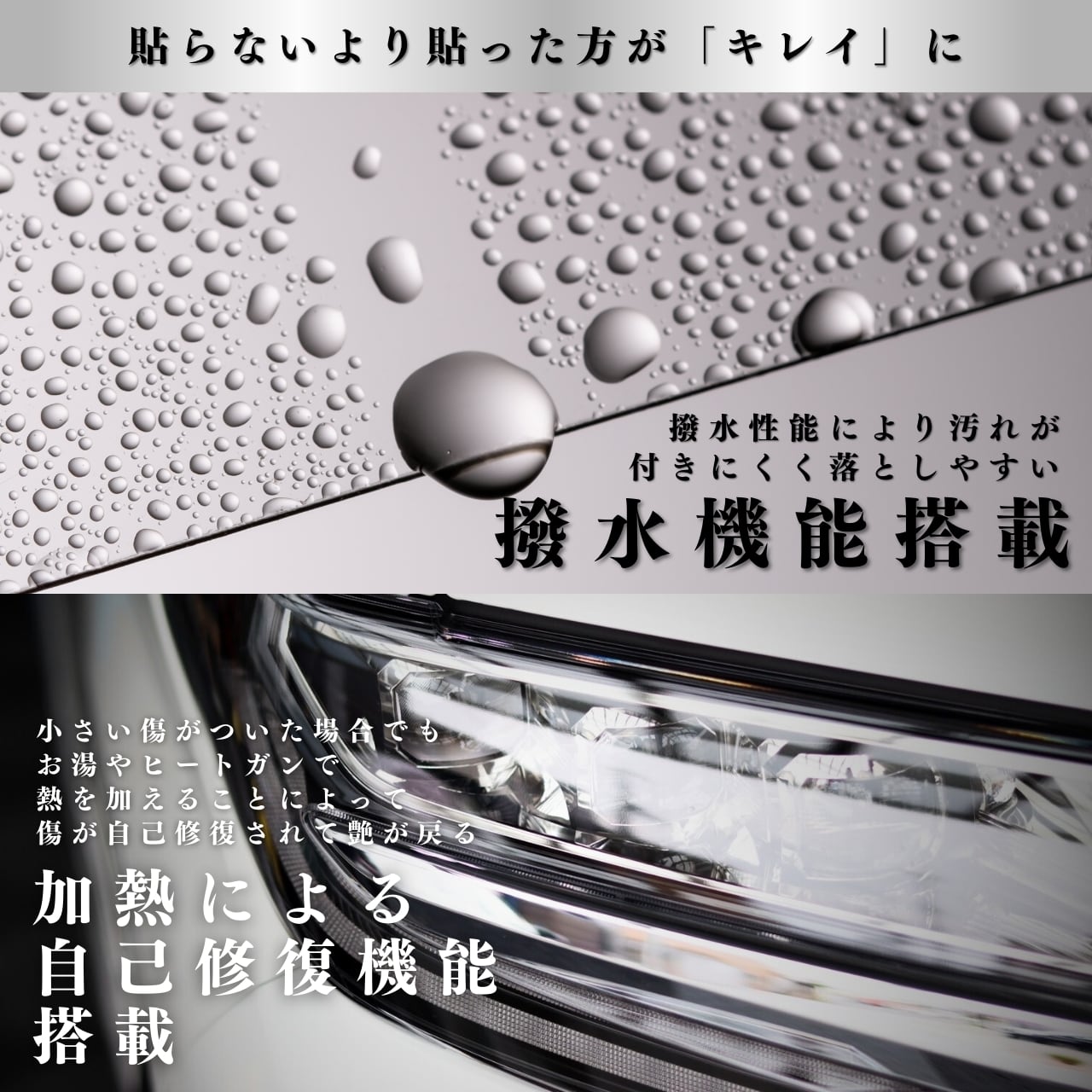 雨の日でもしっかりと水を弾き、車の輝きを持続させます。