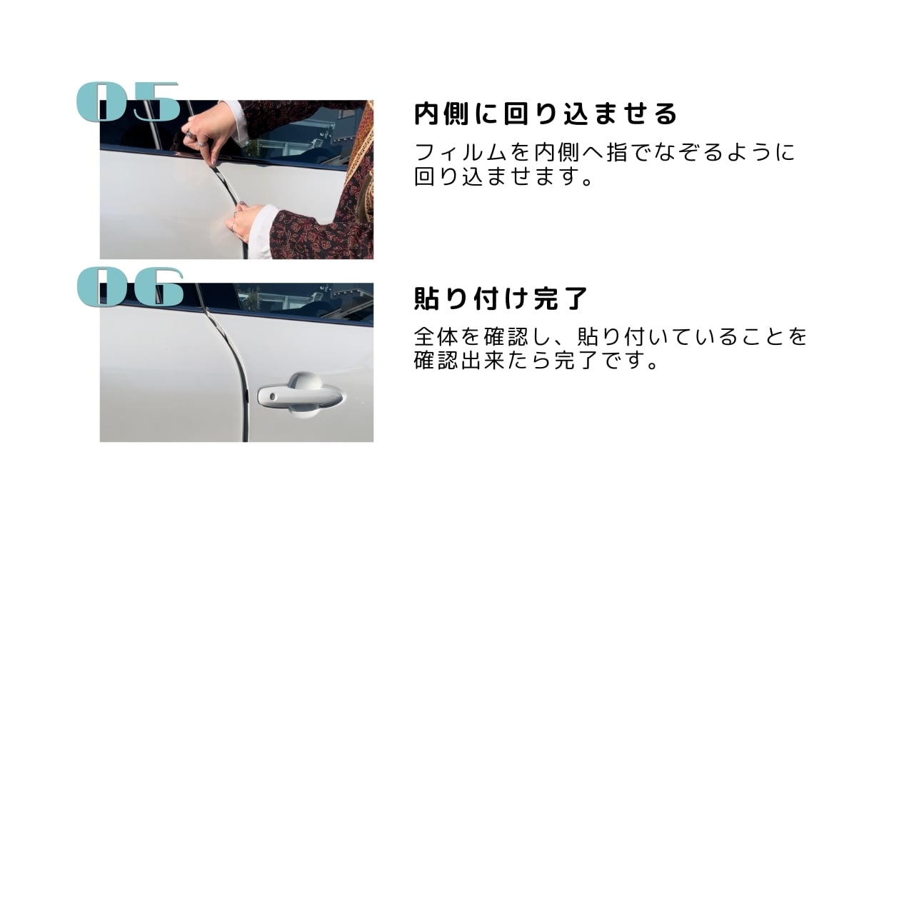 5.フィルムを内側へ指でなぞるように回り込ませます。